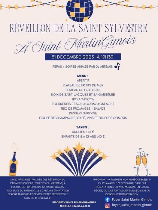 Venez passer le réveillon de la Saint Sylvestre à Saint Martin Gimois
