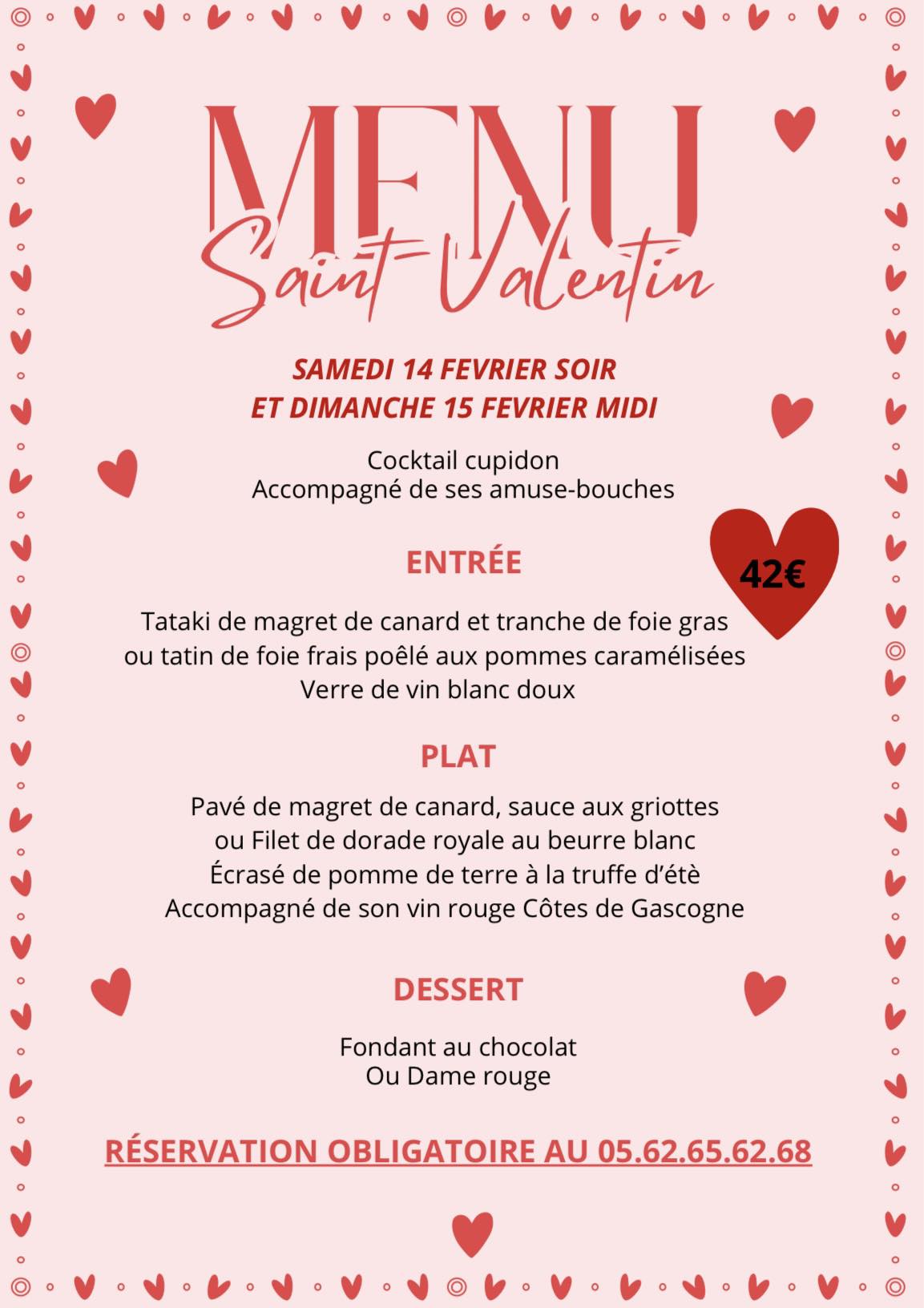 Le samedi 14 février et le dimanche 15 à midi, la Hournère vous convie à un menu spécial pour fêter la Saint-Valentin.