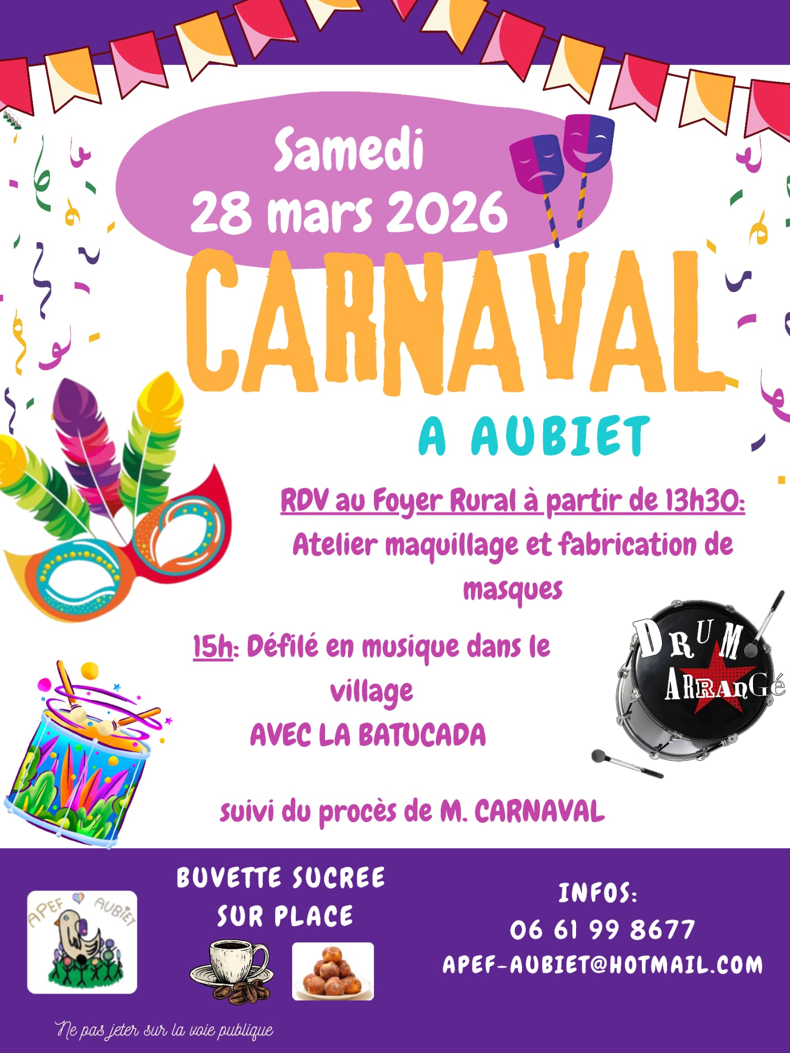 Buvette sucrée sur place. Infos au 06 61 99 86 77 et apef-aubiet@hotmail.com