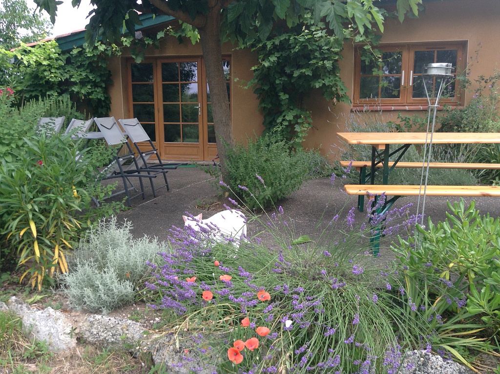 Le gîte est composé d'un séjour, d'une chambre, d'une cuisine et d'une salle d'eau. Il y a également un canapé pouvant servir de couchage. Le logement dispose d'une terrasse ombragée donnant sur la cuisine qui permet, si vous le souhaitez, de déjeuner ou dîner autour d'un barbecue. Le jardin offre un espace de détente idéal. Les fruits du jardin sont à votre disposition : framboises, groseilles, cerises, figues, pommes...