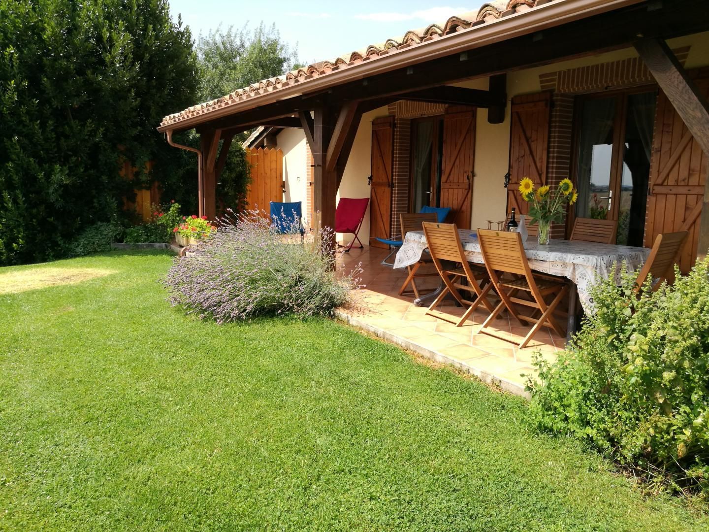 Surplombant les vallons gersois et offrant une vue imprenable sur la chaîne des Pyrénées, cette maison traditionnelle de 100m² est indépendante et de plain-pied sur un terrain arboré et fleuri de 950m². Elle se situe en bordure d'une route communale peu fréquentée, sécurisée par une clôture (grillage, portails, haie). Vous apprécierez la terrasse couverte de 35m² côté sud sur laquelle vos repas et vos moments de détente seront agrémentés d'un paysage magnifique.