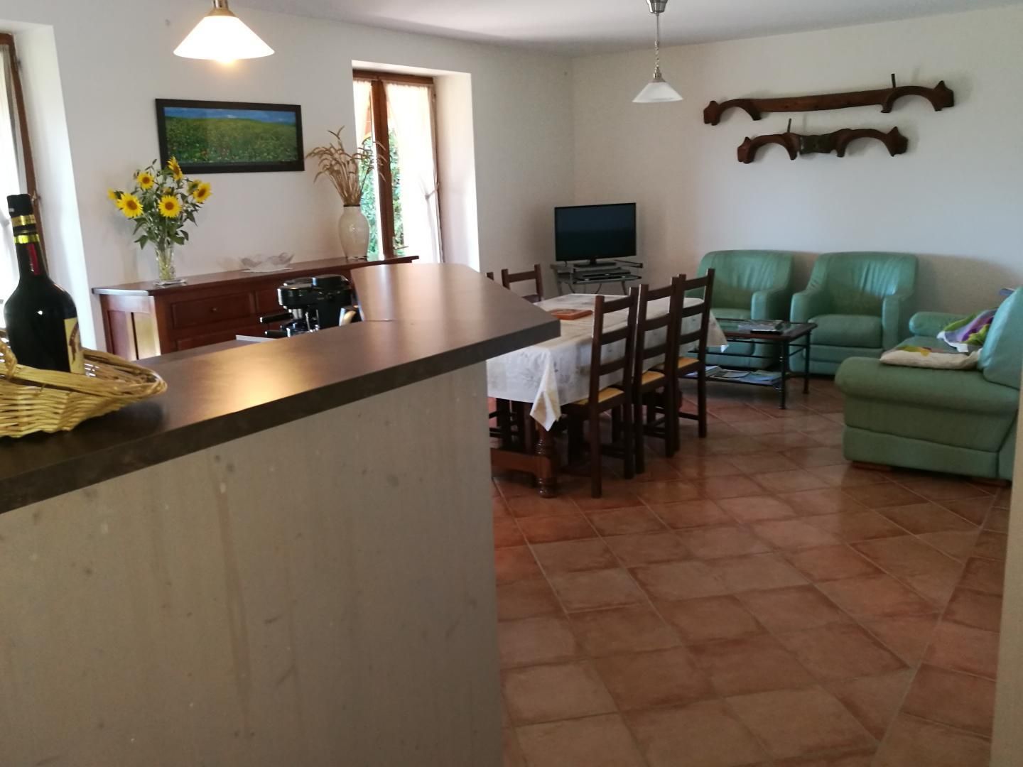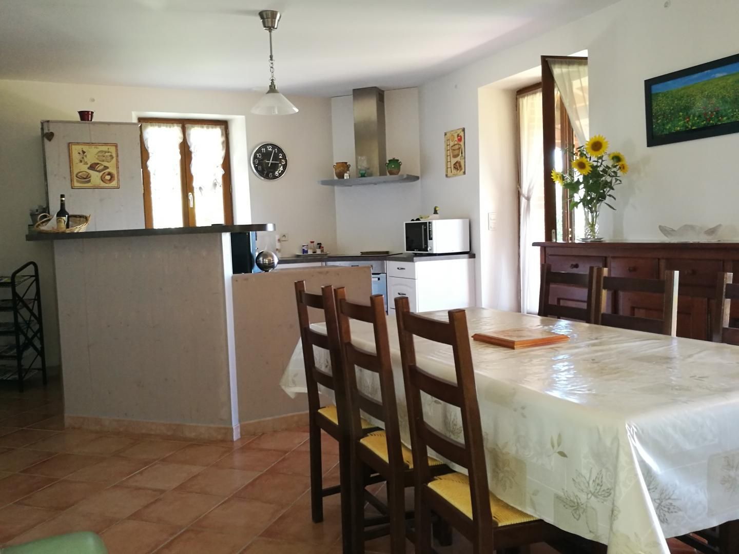 Cuisine 'américaine' donnant sur grand séjour/salon de 35m2, 3 chambres (1 lit 160, 1 lit 140, 1 lit 120, 1 lit 90), salle d'eau, wc/lave-mains.