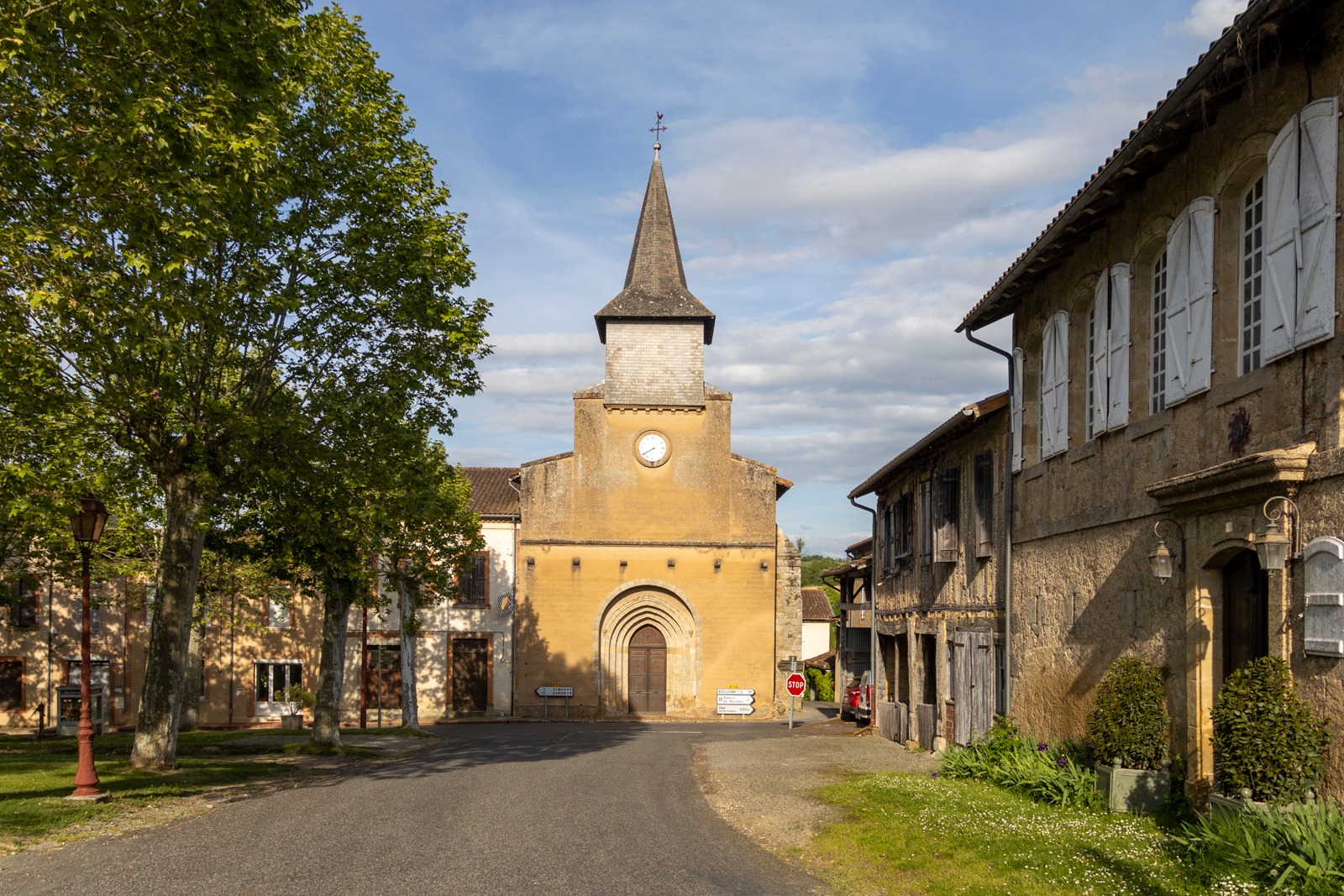 Habitations colorées à colombage, ruelles de charmes, église et place de caractère font tout le charme de ce village typique proche du lac de l'Astarac.